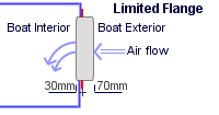 With this option the grille extends 70mm to the exterior of the vessel and only 30mm protrudes into the air ducting. This achieves the least restrictive passage within the air ducting. It is recommended that this arrangement is utilised in any restricted airway so as to maximise air flow.